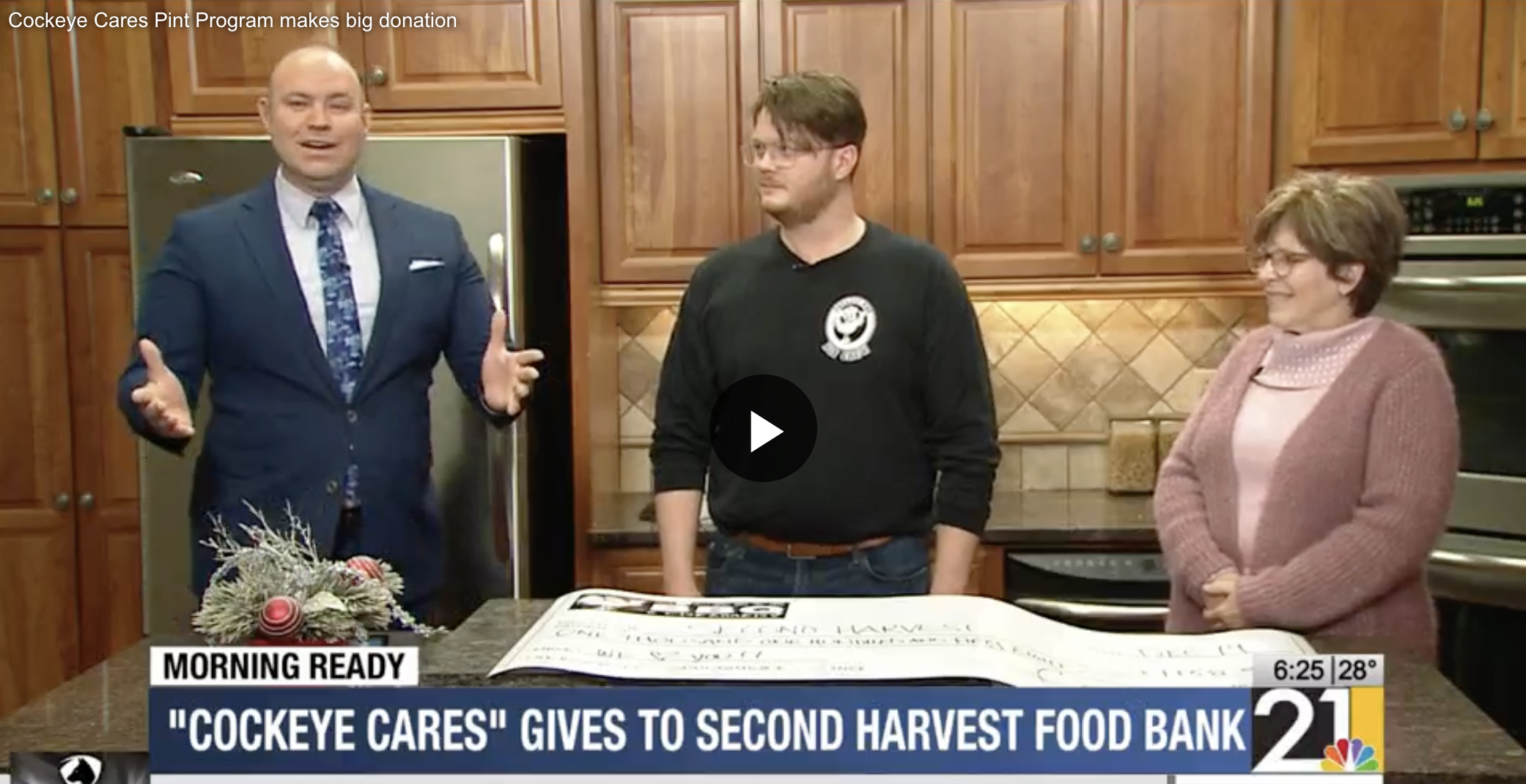COCKEYE CARES PROGRAM MAKES BIG DONATION Dec 20 Written By Erik Second Harvest Food Bank received more than $1,000 through the program. Erik